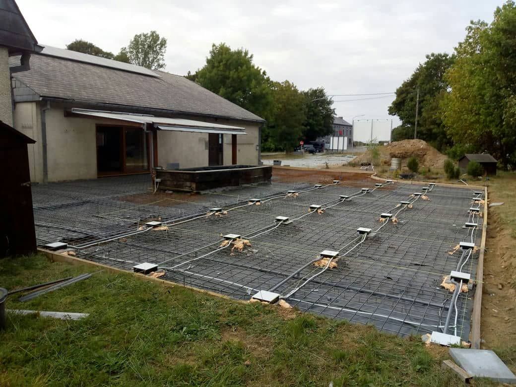 Vous avez ici une très belle terrasse de 235m2. Vous pouvez voir 30 petits carrés au sol. Chaque petit carré contient une arrivée d’électricité, d’eau et d’air. Nous pourrons y diffuser de l’air chaud ou de l’air parfumé. Autour de cette « plaine » sont diffusés des parfums dont nous changeons la fragrance régulièrement.