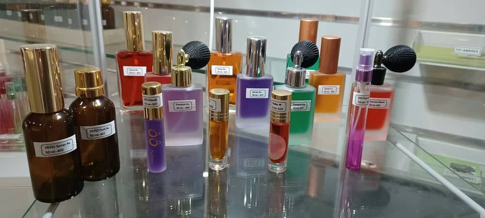 Sur l’étagère supérieure, vous pouvez admirer une collection de flacons de parfum « classiques ». Ils sont de différentes capacités : 5 ml en version « rollers » et en version « spray » 10 ml – 30 ml – 50 ml et 100 ml.