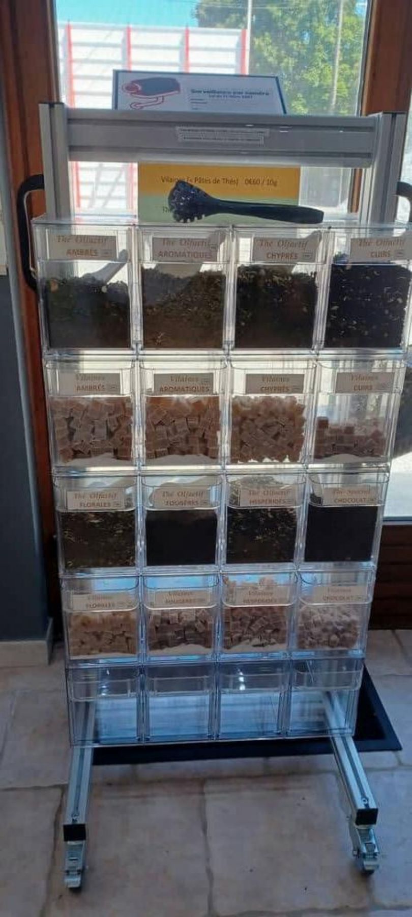 Les Thés Olfactifs et le Thé au Chocolat que vous avez sentis dans la Salle Principale, les Vilains, sont également disponibles au poids (minimum 50 grammes par sorte).