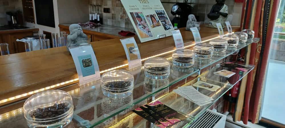 Quand vous aimez bien un thé, vous pouvez mettre une croix sur la feuille que vous avez reçue en arrivant. Ils sont disponibles en boutique au poids (à partir de 50 g).