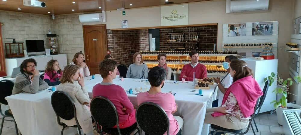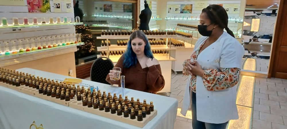 - Très belle découverte ! J'ai passé un merveilleux moment, je ne m'attendais pas à ça. Un super accueil et une très bonne compagnie. Une expérience unique ! Je suis agréablement surprise et mon parfum me ressemble vraiment. Un grand, grand merci à vous pour tout. Bonne continuation ! Et plein de bonheur :-) Estelle (15 ans, atelier et visite de groupe)