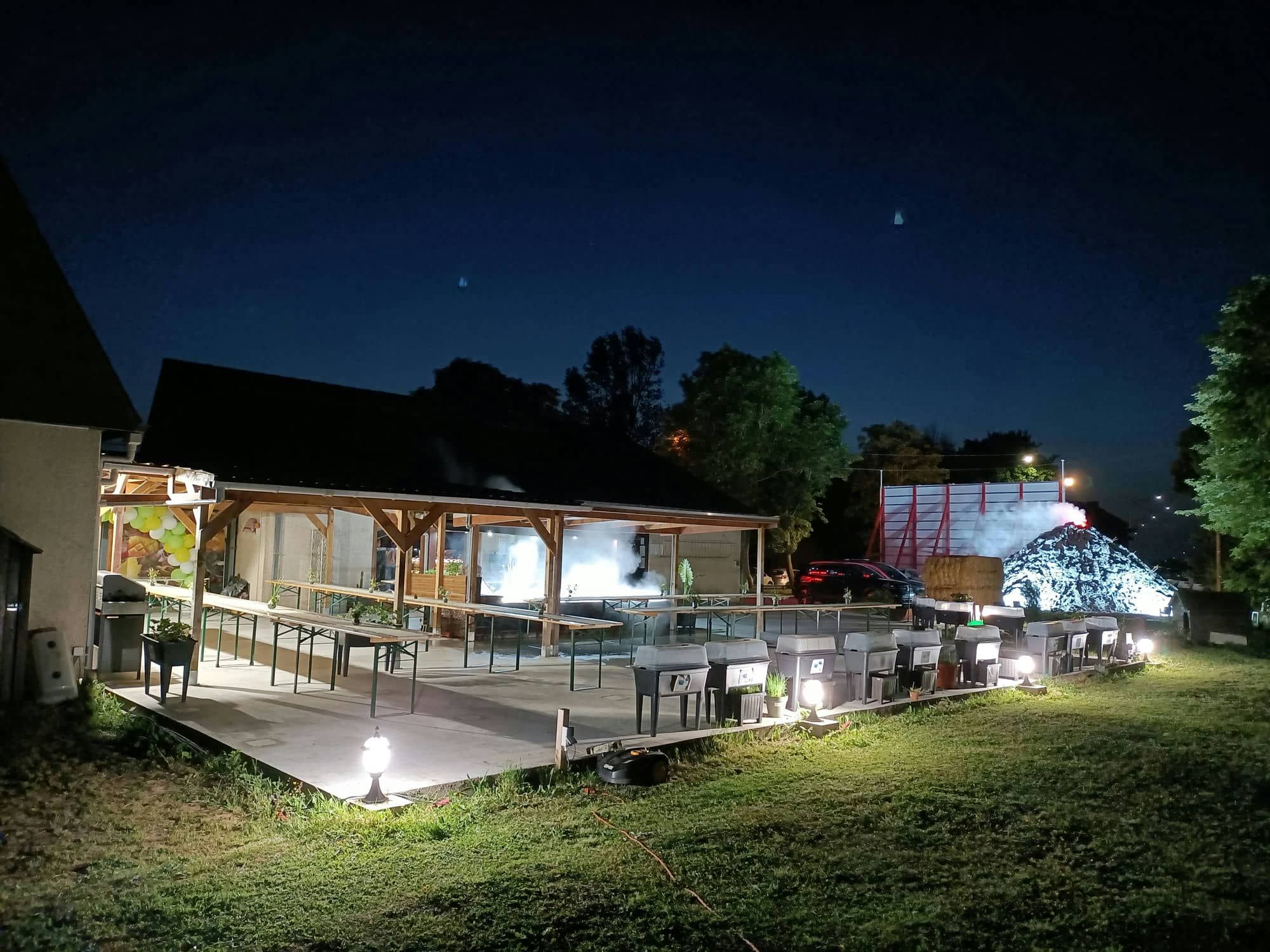 A la belle saison nous pouvons faire manger des groupes qui nous rendent visite ou viennent pour l’une ou l’autre activité à savoir jusqu’à 60 personnes à table de brasserie ou entre 80 et 100 personnes en tables-mange-debout.