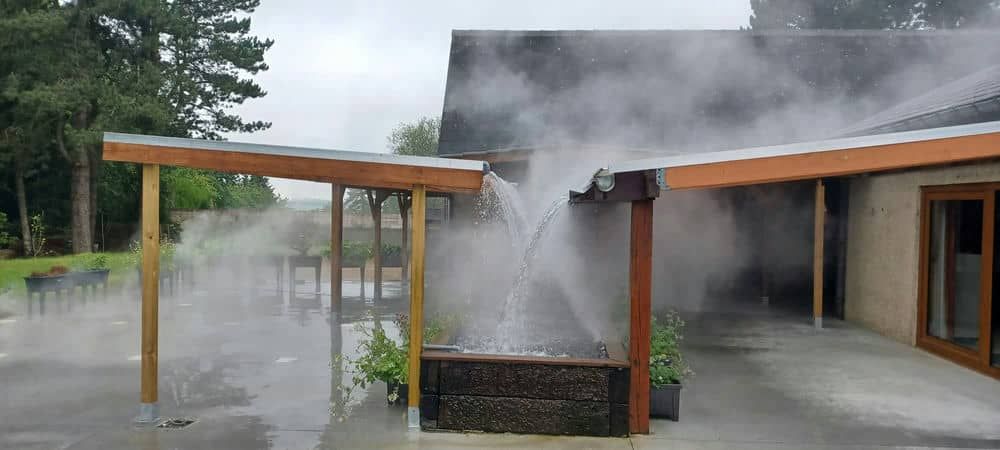 Non loin de la Salle Principale vous découvrez la première Double Cascade Parfumée au monde. C’est vraiment relaxant et apporte de la fraîcheur quand il fait chaud ! Cette eau de pluie parfumée est en circuit fermé alimenté par nos panneaux photovoltaïques. C’est à la fois écologique et économique. Rendez-vous au pied du Volcan