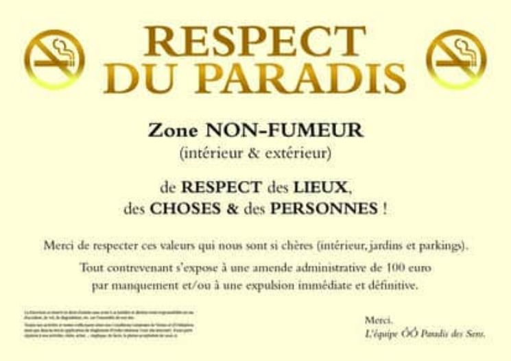 Tout notre établissement est une zone non-fumeur tant à l’intérieur qu’à l’extérieur. Deux cendriers sont mis à votre disposition sur le parking pour y éteindre vos mégots. Nos amis les animaux ne sont malheureusement pas admis.